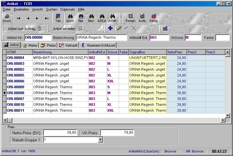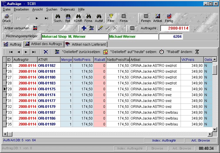 TC8 ist ein flexibles Datenbank-Produkt zur Verwaltung von Liefer-Aufträgen für Handlungsreisende / Verkäufer.