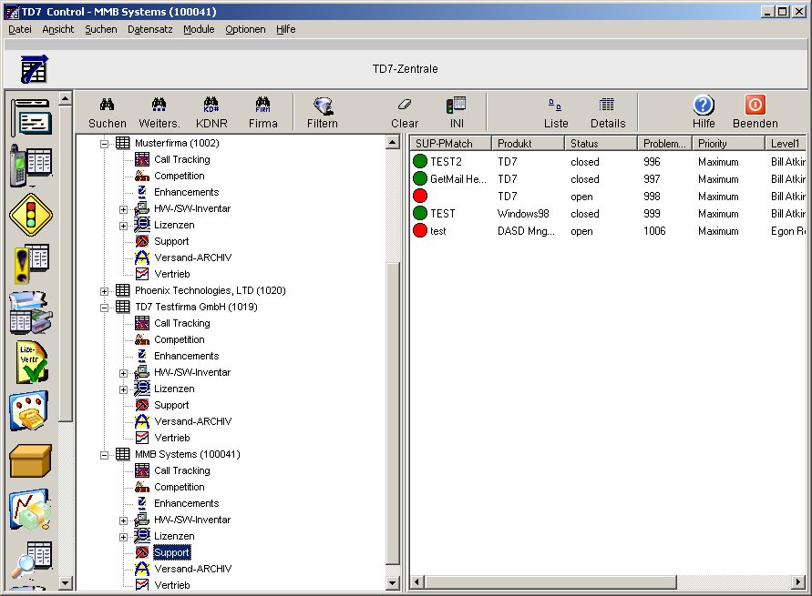 Ferner bietet TD7eine vollständige Adressverwaltung, ein Modul zur Pflege von Lizenzinformationen, eine Vertriebsorganisation - unterstützt von Mailingfunktionen der Adressverwaltung - sowie ein Call-Management und Vorlagen für Anforderungen zur Software-Entwicklung.