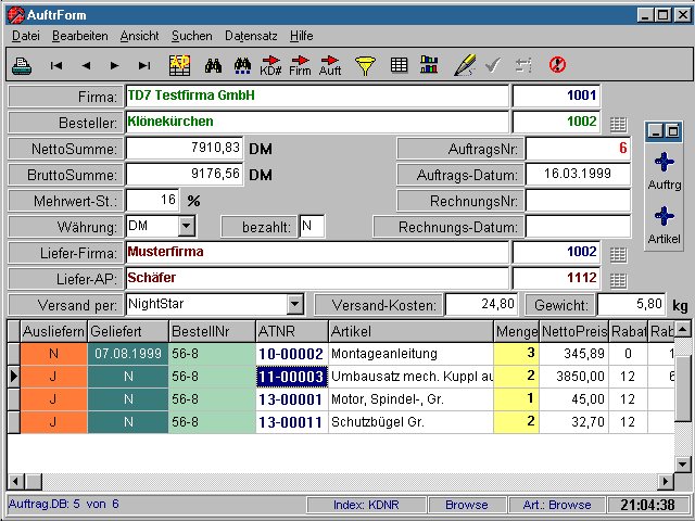 Die Auftrags-Verwaltung ist revisionssicher konfiguriert: es können keine Änderungen an den zu einem Artikel vorgegebenen Preisen (innerhalb eines Auftrags) und an der Auftrags-Summe vorgenommen werden; zudem ist keine Änderung der Auftragsdaten nach Erstellung einer Rechnung möglich.